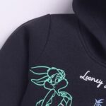 Tinyo boys hoodie, Looney Tunes printed hoodie, black infant hoodie, cotton blend boys sweatshirt, lightweight casual hoodie, Tinyo baby apparel, playful graphic print hoodie, everyday wear hoodie for boys