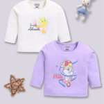 Tinyo Looney Tunes Printed Cotton T-shirt Set For Infant Girls (Assorted, Pack Of 2)