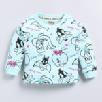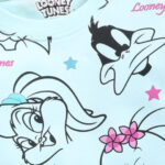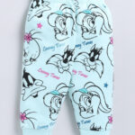 Tinyo Looney Tunes Printed Pure Cotton T-shirt With Joggers For Infant Girls (Blue, Pack Of 1)