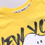 Dress your little one in comfort and playful style with the Tinyo Peanuts Printed Cotton T-Shirt for boys. This yellow t-shirt features a humour and comic Peanuts print on the full front, a round neckline, short regular sleeves, and a regular fit. Made from knitted cotton fabric, the t-shirt is soft, breathable, and perfect for casual everyday wear. Easy to maintain with machine wash care.
