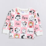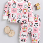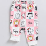 Tinyo Peanuts Printed Pure Cotton T-shirt with Joggers Clothing Set for Infant Girls (Pink & White, Pack of 2)