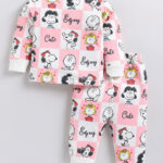 Add comfort and playful style to your little one’s wardrobe with this Tinyo Peanuts Printed Pure Cotton T-shirt with Joggers Clothing Set for infant girls. This clothing set consists of a pink and white Peanuts printed T-shirt with a round neck and long sleeves, paired with matching pink and white printed joggers featuring ribbed cuffs, an elasticated waistband, and slip-on closure for easy wear.