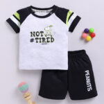 Tinyo Peanuts Printed Pure Cotton T-shirt With Shorts For Infant Boys (Grey Melange, Pack Of 1)