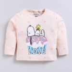 Tinyo Peanuts Snoopy Printed Cotton T-shirt for Infant Girls (Peach, Pack of 1)