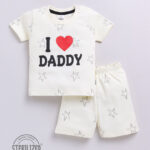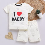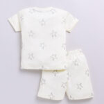 Dress your little one in comfort and everyday style with the Tinyo Printed 100% Cotton T-Shirt & Shorts Set for infant boys. This clothing set consists of an off-white printed t-shirt with a round neck and short sleeves, paired with matching off-white printed shorts featuring a slip-on closure. Made from pure cotton, the set is soft, breathable, and suitable for daily wear. Easy to maintain with machine wash care.