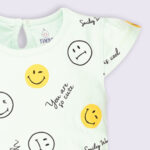 Tinyo Printed 100% Cotton T-Shirt & Shorts Set For Infant Girls (Light Green, Pack Of 1)