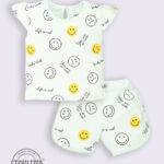 Dress your little one in comfort and style with the Tinyo Printed 100% Cotton T-Shirt & Shorts Set for infant girls. This set includes a light green printed t-shirt with a round neck and short cap sleeves, paired with light green printed shorts featuring a slip-on closure. Made from 100% cotton, the set is soft, breathable, and lightweight, making it ideal for delicate skin. Easy to maintain with machine wash care.