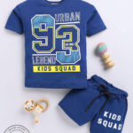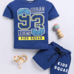 Tinyo Printed Cotton T-Shirt & Shorts Set For Boys (Blue, Pack Of 1)