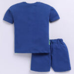 Dress your little one in comfort and playful style with the Tinyo Printed Pure Cotton T-Shirt & Shorts Set for boys. This navy blue printed t-shirt features a round neckline and short sleeves, paired with matching printed shorts with a slip-on closure. Crafted from pure cotton, the set is soft, breathable, and perfect for casual everyday wear. Easy to maintain with machine wash care as per label instructions.