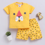 Dress your little one in comfort and playful style with the Tinyo Printed Pure Cotton T-Shirt & Shorts Set for boys. This set includes a yellow and black printed t-shirt with a round neckline and short sleeves, paired with matching yellow and black printed shorts featuring a slip-on closure. Crafted from 100% cotton, the set is soft, breathable, and lightweight, perfect for everyday casual wear. Easy to maintain with machine wash care.
