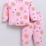 Tinyo Printed Pure Cotton Top With Joggers Clothing Set For Infant Girls (Pink & Yellow, Pack Of 1)