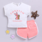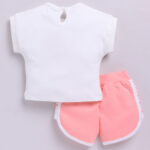 Tinyo Printed Pure Cotton Top with Shorts for Girls (White & Peach, Pack Of 1)