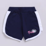 Tinyo Printed Typography Pure Cotton T-Shirt & Shorts Set For Girls (Navy Blue, Pack Of 1)