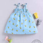Tinyo Smiley Print Smocked Cotton Fit & Flare Dress for Infant Girls (Blue, Pack Of 1)