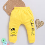 Tinyo Smiley Printed Pure Cotton Joggers For Infant Girls (Yellow, Pack Of 1)