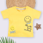 Tinyo Smiley Printed Pure Cotton T-Shirt For Infant Boys (Yellow, Pack Of 1)