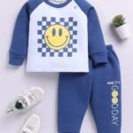 Dress your little one in cozy style and everyday comfort with the Tinyo Smiley World Printed Fleece Sweatshirt with Sweatpant for baby boys. This baby clothing set includes a full-sleeve fleece sweatshirt and matching sweatpant in airforce blue, making it a perfect choice for casual wear. Crafted from premium-quality fleece, the fabric offers warmth, softness, and gentle comfort against delicate skin. The sweatshirt features a Smiley World graphic print on the front panel, while the sweatpant is designed for easy wear and all-day comfort. Ideal for winter and everyday use, this set keeps your baby snug, stylish, and happy.
