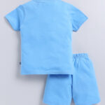 Dress your little one in comfort and playful style with the Tinyo Smiley World Printed Pure Cotton T-Shirt & Shorts Set for boys. This blue and yellow conversational printed t-shirt features a round neckline and short sleeves, paired with matching blue and yellow printed shorts with a slip-on closure. Made from pure cotton, the set is soft, breathable, and perfect for everyday casual wear. Easy to maintain with machine wash care.