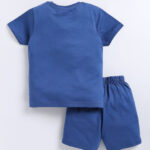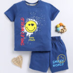 Tinyo Smiley world Printed Pure Cotton T-Shirt & Shorts Set For Boys (Blue, Pack Of 1)