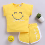 Tinyo Smiley World Printed Pure Cotton T-Shirt & Shorts Set For Girls (Yellow, Pack Of 1) (Copy)