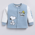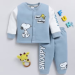 Tinyo Snoopy Printed Fleece Cardigan with Joggers for Infant Boys (English Blue, Pack of 1)