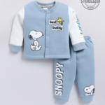 Keep your little one cozy and stylish with this Tinyo Snoopy Printed Fleece Cardigan with Joggers for infant boys. Crafted from premium-quality fleece, this set includes a full-sleeve cardigan-style sweatshirt and matching joggers, featuring playful Snoopy graphic prints on the front panel for a fun, cheerful look.