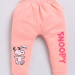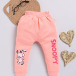 Tinyo Snoopy Printed Pure Cotton Joggers For Infant Girls (Peach, Pack Of 1)