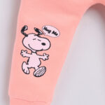 Tinyo infant girls joggers, Snoopy printed baby joggers, peach baby joggers, pure cotton infant wear, infant girls casual wear, comfortable baby bottom wear, breathable cotton baby joggers, stylish infant clothing, Tinyo baby apparel, daily wear infant joggers, soft cotton baby wear, infant girls fashion India
