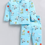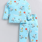 Tinyo Snoopy Printed Pure Cotton Night Suit For Infant Girls (Blue, Pack Of 1)