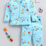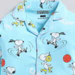 Ensure your little one sleeps comfortably and in style with the Tinyo Snoopy Printed Pure Cotton Night Suit for infant girls. This night suit features a blue Snoopy printed shirt with a lapel collar and long sleeves, paired with matching pyjamas that have an elasticated waistband and slip-on closure for easy dressing. Made from 100% pure cotton, the fabric is soft, breathable, and gentle on delicate skin. Designed in a regular fit, this night suit is perfect for bedtime or leisure at home and is easy to maintain with machine wash.
