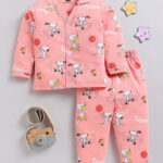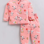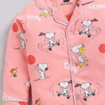 Tinyo Snoopy Printed Pure Cotton Night Suit For Infant Girls (Peach, Pack Of 1)
