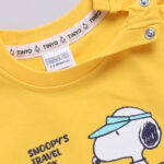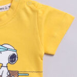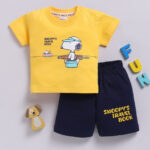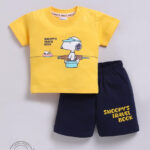 Tinyo Snoopy Printed Pure Cotton T-Shirt & Shorts Set For Boys (Yellow & Navy Blue, Pack Of 1)