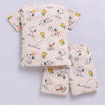 Tinyo Snoopy Printed Pure Cotton T-Shirt & Shorts Set For Infant Boys (Beige, Pack Of 1)