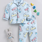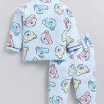Tinyo Teddy Printed Pure Cotton Night Suit For Infant Girls (Blue, Pack Of 1)