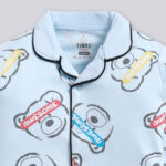 Blue teddy graphic printed shirt and matching pyjamas