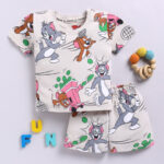 Tinyo infant boys set, Tom & Jerry printed cotton t-shirt & shorts, pure cotton kids set, round neck t-shirt for boys, snap button t-shirt, slip-on shorts for infants, lightweight cotton infant wear, machine washable kids outfit, Tinyo kids apparel