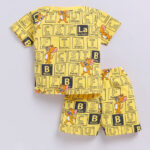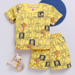 Dress your little one in comfort and playful style with the Tinyo Tom & Jerry Printed Pure Cotton T-Shirt & Shorts Set for infant boys. This set includes a yellow Tom & Jerry printed t-shirt with a round neckline, short sleeves, and snap button closure, paired with matching yellow printed shorts featuring a slip-on closure. Crafted from pure cotton, the set is soft, breathable, and lightweight, making it perfect for everyday casual wear. Easy to maintain with machine wash care.