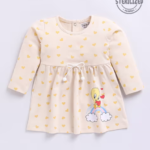 Tinyo Tweetie Bird & Hearts Printed A-Line Dress For Infant Girls (Beige, Pack Of 1)