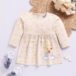 Crafted from soft and breathable 100% cotton fabric, this dress ensures gentle comfort for delicate skin while allowing freedom of movement. The button closure at the back makes dressing and undressing easy, keeping your child stylish and comfortable throughout the day.