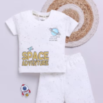Tinyo Typographic Print 100% Cotton T-shirt & Shorts Set for Infant Boys (Off White, Pack Of 1)