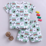 Dress your little one in comfort and playful style with the Tinyo We Bare Bears Printed Pure Cotton T-Shirt & Shorts Set for infant boys. This set includes a sage green printed t-shirt with a round neckline and short sleeves, paired with matching sage green printed shorts featuring a slip-on closure. Made from 100% cotton, the set is soft, breathable, and lightweight, perfect for everyday casual wear. Easy to maintain with machine wash care.