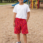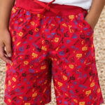 Red boys’ graphic printed shorts with trendy design