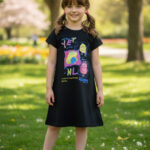 Perfect for casual outings, playtime, or everyday comfort, this dress combines style, comfort, and a fun printed appeal for your little one.