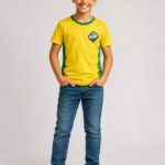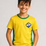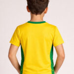 • Yellow T-shirt with green trim and chest emblem