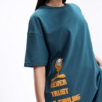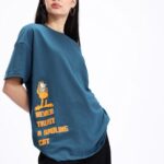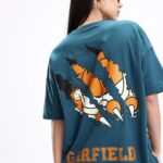 Add a dose of fun to your casual wardrobe with this Garfield Printed Drop-Shoulder Sleeves Oversized T-shirt for women. Featuring a teal and orange colour palette, this tee highlights a playful Garfield humour and comic print at the back, making it a perfect pick for cartoon lovers. The longline length and drop-shoulder sleeves enhance its relaxed, oversized fit, while the knitted pure cotton fabric offers unbeatable comfort and breathability. Pair it with jeans or shorts for a cool, easygoing look.