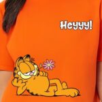 This women’s Garfield graphic print boxy fit top brings a fun and playful vibe to your everyday wardrobe. Featuring the iconic Garfield character printed on the front, this top adds a touch of humour while keeping your look effortlessly stylish. Crafted from soft, breathable cotton fabric, it ensures all-day comfort and ease of movement.