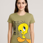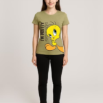 Add playful charm to your casual wardrobe with the Women Looney Tunes Graphic Print Regular Fit Cotton Top. Made from a soft and breathable cotton blend fabric, this short-sleeved women’s top provides all-day comfort with a flattering regular fit. The vibrant Looney Tunes printed design adds a fun and quirky touch, perfect for pairing with jeans, joggers, or skirts. This cartoon-inspired graphic top is ideal for women who want a stylish, comfortable, and eye-catching everyday piece.
