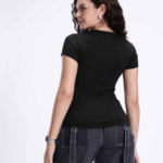 Tuck this top into high-waisted denim or pair it with cargo pants and sneakers for a fun, casual vibe. Add a light jacket or cardigan for layering on cooler evenings.