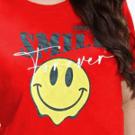 Women Smiley World Printed Boxy Fit Cotton Top – Stay Cool, Stay Happy