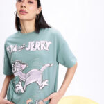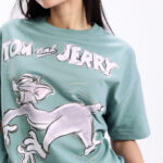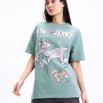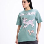 Women Tom & Jerry Printed Drop-Shoulder Sleeves Oversized T-shirt